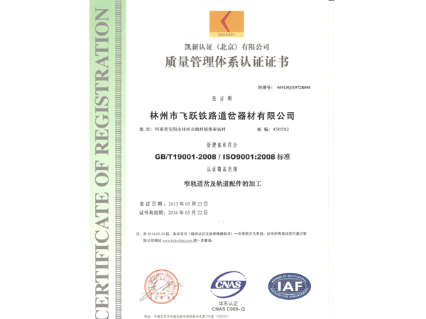 林州市飛躍鐵路道岔器材有限公司位于舉世聞名的世界八大奇跡之一“人工天河”紅旗渠畔,晉、冀、豫三省交界處,交通、通訊便捷。 公司擁有職工和管理人員120多人,高工5名,技術(shù)人員23人。擁有先進(jìn)的鑄造機(jī)加工設(shè)備和完整的質(zhì)量檢測(cè)體系,使我公司連續(xù)數(shù)年被評(píng)為“重合同守信用”和“重量管理”先進(jìn)單位。公司生產(chǎn)的主要產(chǎn)品有:輕重軌道岔及各種工具。按種類區(qū)分有:?jiǎn)伍_道岔、對(duì)稱道岔、三開道岔、渡交組合道岔等。特殊要